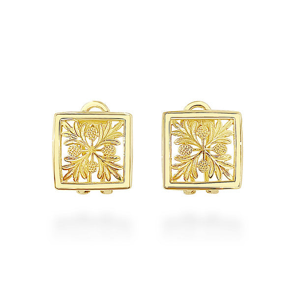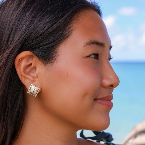 14K Hawaiian Earrings - Quilt Ulu 15mm