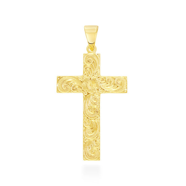 This 14K cross carries the quiet strength of Hawaiian tradition, hand-engraved with intention, designed to become part of your family's story across generations.